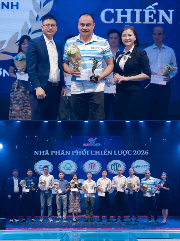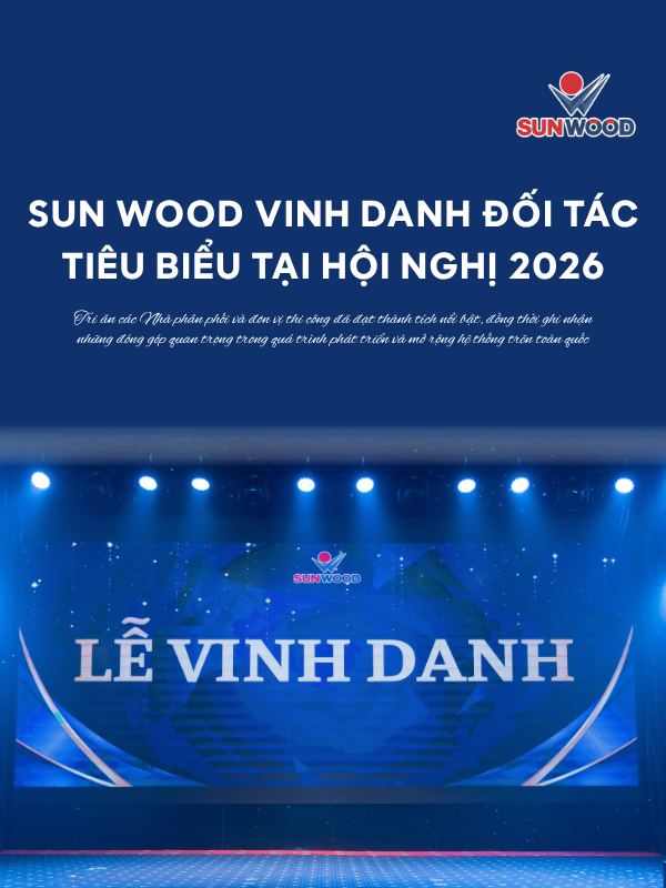 Trong khuôn khổ Hội nghị hệ thống phân phối toàn quốc & đơn vị thi công nội thất 2026, Sun Wood đã tổ chức lễ vinh danh các Nhà phân phối và đơn vị thi công tiêu biểu. Đây là hoạt động quan trọng nhằm ghi nhận những đóng góp nổi bật, đồng thời tri ân sự đồng hành của các đối tác trong suốt hành trình phát triển.
