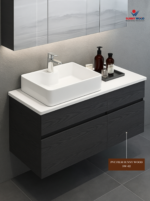 Tấm PVC Foam phủ Melamine/film có thể gia công theo nhiều kiểu dáng và kích thước. Thợ thi công dễ xử lý tại xưởng hoặc tại công trình. Vật liệu phù hợp cho cả phòng tắm nhỏ và các không gian rộng rãi. Khả năng tùy biến giúp đáp ứng nhiều phong cách nội thất.